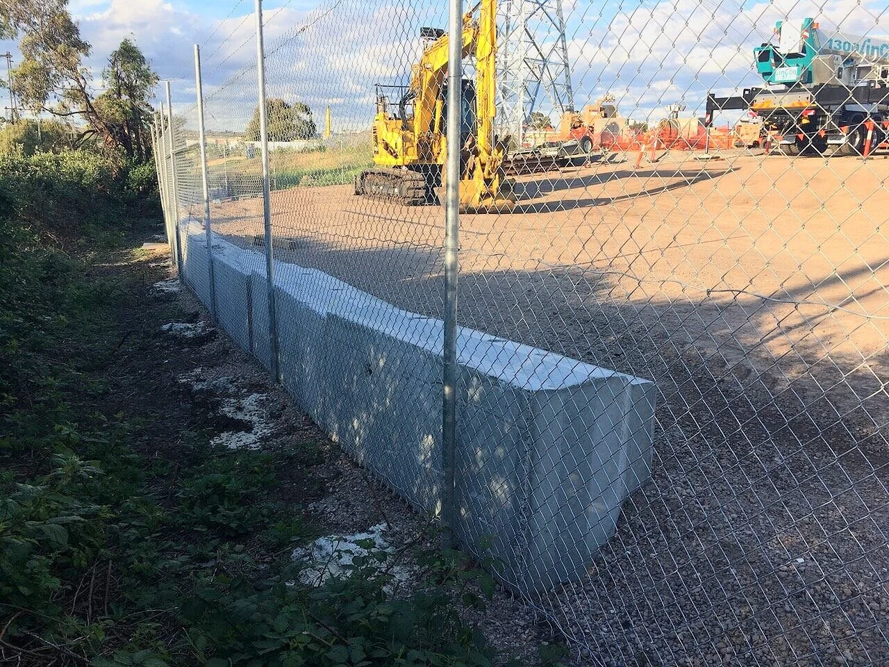 Flat-sided Road barriers used for perimeter on Multiplex Melbourne CBD site.